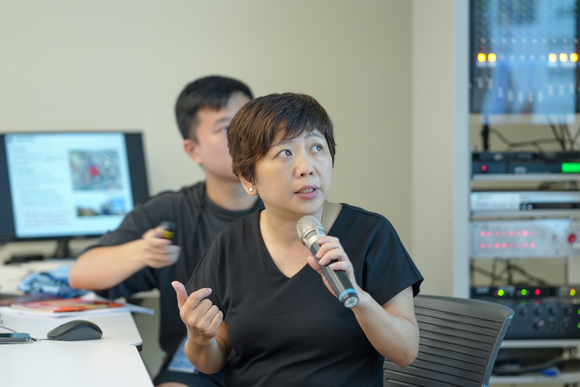 王俊秀教授的研究聚焦在新竹六燃的人本方向,並以音樂為出發。此次分享介紹了王昆玉先生在新竹六燃擔任工員所唱的《海軍之歌》,以及《六燃廠歌(新竹版)》、《新竹保甲修練所所歌》、《斯馨寮歌》(高雄六燃女性宿舍)等作品。其中,六燃廠歌及斯馨寮歌,請清華大學音樂系的施梅紛老師重新編曲,各自選取英式的管弦樂及日式的日本箏、太鼓作為演奏樂器。透過這些歌曲,跳脫了沉重的文獻資料,以聽覺的方式重新回顧這段歷史。賴雯淑教授也認為,這些歌曲正好可以與先前黃子軒與山平快創作的《最好的時光,大煙囪》、曙光女中創作的《囪囪》相互呼應。